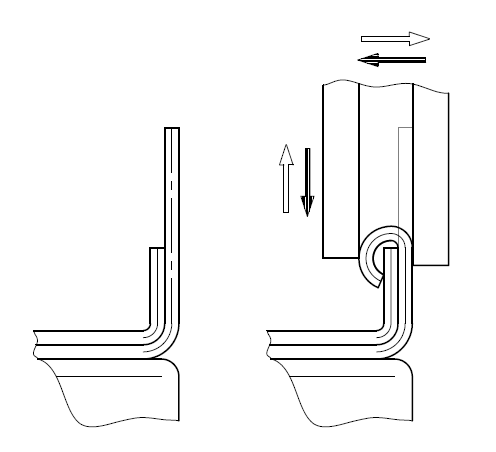 To initially form the ring, the strip is cut to size, rolled, and welded. To form a ring for enameled pots, a series of automated operations is performed on a horizontal cutting and beading machine, driven by a vertical carriage that incorporates the forming roller.