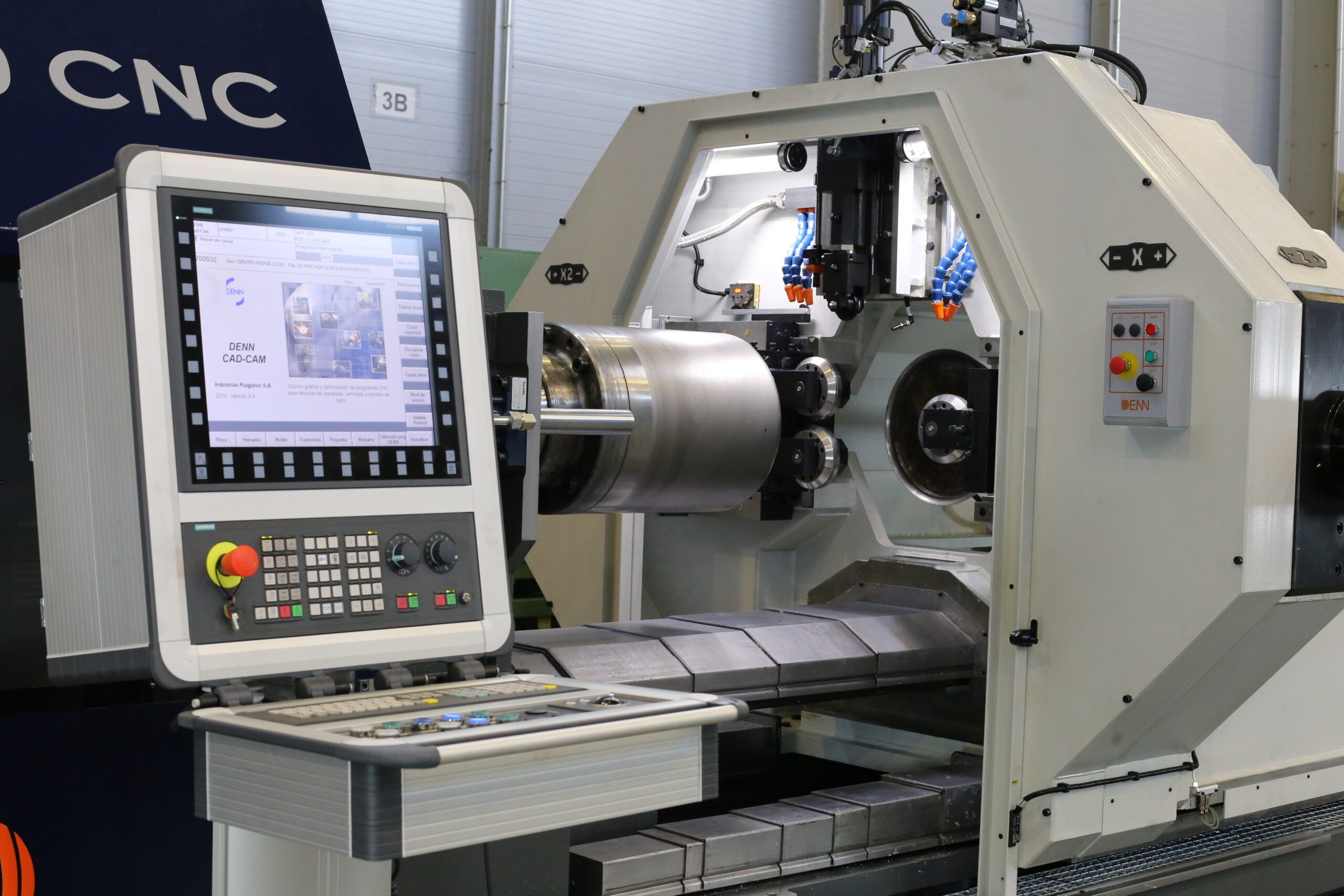 The disc is placed on the centering device and pressed against the front face of the die by the tailstock. Once the workpiece is secured, the die begins to rotate. The roller begins to press the material, forming it against the die. Depending on the material, initial thickness, final thickness, and geometry of the operation, this forming process is performed in one or more passes until the workpiece has taken on the shape of the die.