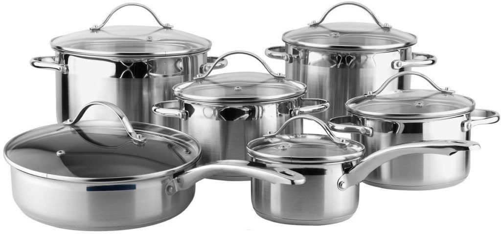 - Cylindrical stainless steel pots and pans